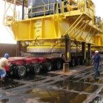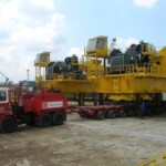 We have provided consultation, planning and supervision for RORO operation for 2 units Unloader from Muhibbah Jetty to Jurong Port, Singapore. 1 unit 23.34 x 13.40 x 50.00m; weight 650 Tons each.